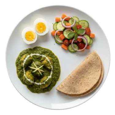Palak Chicken w/ Chapati, Eggs & Carrot Cucumber Salad